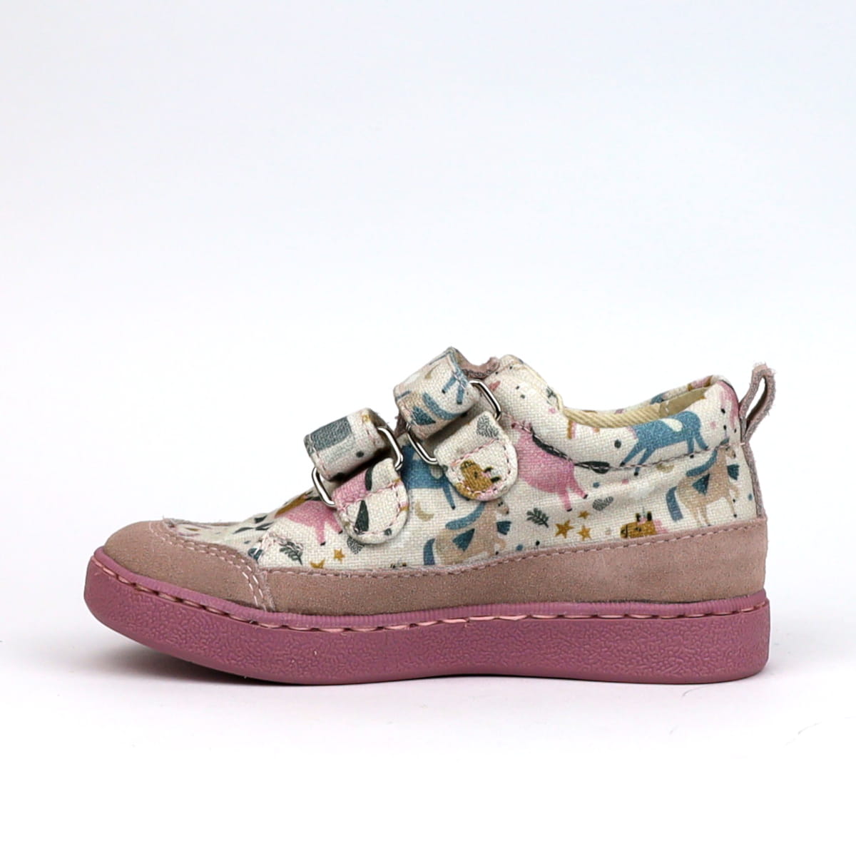 Obuwie wykonane ze skóry naturalnej oraz oddychającego płótna bawełnianego, zapięcie na rzepy, które idealnie dopasowuje bucik do stopy. Ustabilizowany i wyższy zapiętek oraz szeroki i wysoki nosek (czubek buta) gwarantują wygodę i prawidłowy rozwój stopy.